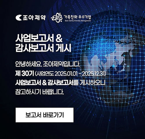 조아제약 전직원은 "땀과 보람과 희망을 함께"라는 기치아래 하나된 마음으로국민의 건강과 행복한 미래를 위해 끊임없이 정진할 것을 약속 드립니다.
